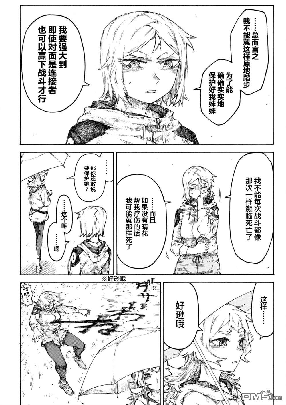 飢饿时便嗜血的海悯 ,还有对他莫名执着、每天提供他吸血的那个没有血缘关系的弟弟道建,因为吸血时带来的兴奋,兄弟间一直保持这种微妙的关系。面对异种出没的危险,这个血腥味蔓延的世界,让海悯随时必须面对失去理智的危险,道建也以此为理由,关着海悯与自己生活在同一个空间中近三年。虽然海悯感谢道建的作为,但是偶而也对他过度保护的行为感到不满,最终抵不住喘不过气的屋子,偷偷熘出门去⋯尽情享受自由海悯面对漫天布地的血就要失去理智时,道建出现在自己的眼前并说道:「这些血果然让你疯狂,你就这么飢渴吗?」